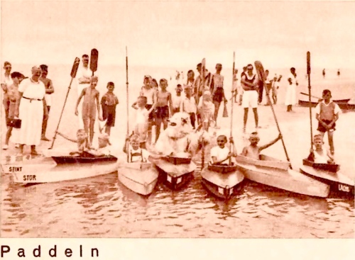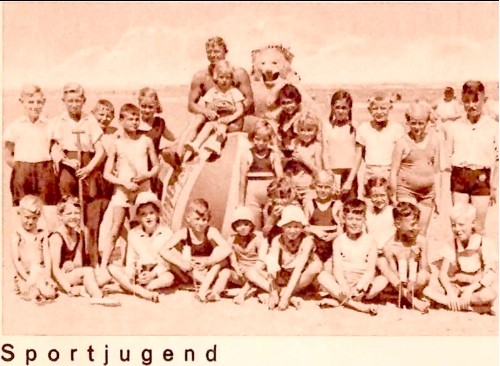 De zilveren folder belooft een modern toeristenoord met uitstekende infrastructuur. Over de hele lengte van het eiland rijdt een treintje en Wangerooge heeft zelfs een luchthaven met lijnen naar Berlijn, Bremen en Hamburg. Aan weerszijden van de Adolf Hitlerstrasse stikt het van de pensions, strand- en kuurhotels. Je kunt hier zweefvliegen, kanovaren, paardrijden en tennissen, naar grote vuurwerkshows en wekelijkse symfonieconcerten. Of zandbunkers bouwen, klik erop voor de blog die ik speciaal daarover schreef.